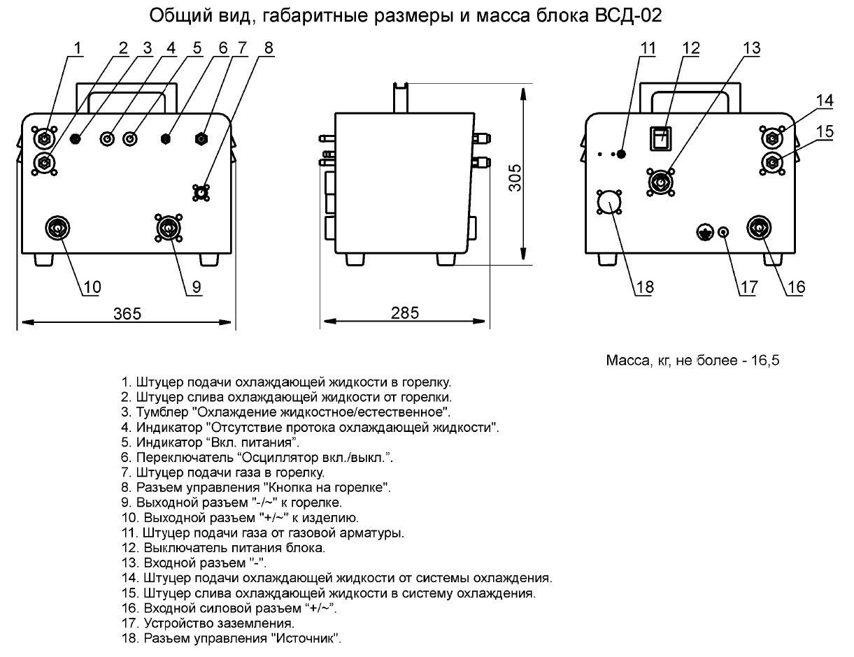 - индикацию сетевого напряжения при включении установки и индикацию отключения установки при тепловой перегрузке;