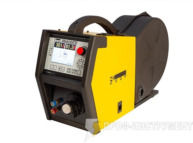Механизм подающий КЕДР MultiWFD (MultiMIG-5000P)-устройство подачи проволоки с цифровым управлением, основными элементами которого являются: двигатель постоянного тока, соединённый посредством зубчатой передачи с 4 роликами механизма подачи, 5-дюймовый цветной ЖК-дисплей, встроенный в устройство и выполняющий роль панели управления.
