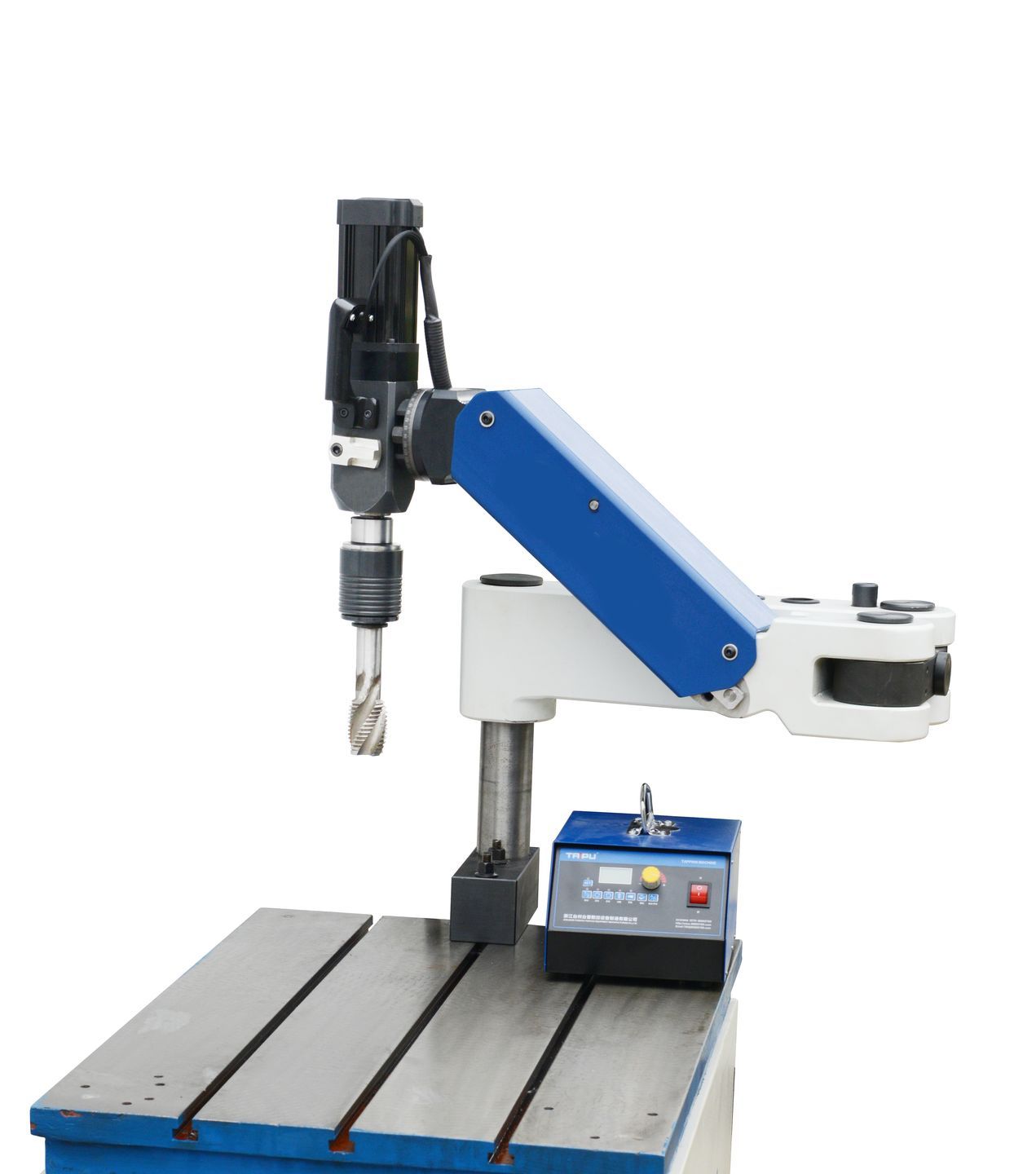 Отличительные особенности: русифицированное меню, возможность настройки ручного (для более точной и качественной нарезки резьбы в чугунах, нержавеющих сталях и других сплавах высокой плотности) и автоматического режима работы с программированием скорости прямого и обратного вращения, установки глубины нарезания резьбы, шаг резьбы (должен соответствовать применяемому метчику).