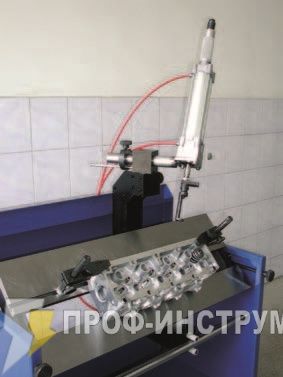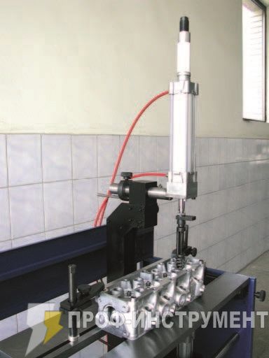 Станок оборудован пневматическим цилиндром для работы с клапанами их сборкой и разборкой: много рабочих положений, которые адаптированы для всех типов головок цилиндра; управление с помощью ножной педали, оборудован регулятором давления.