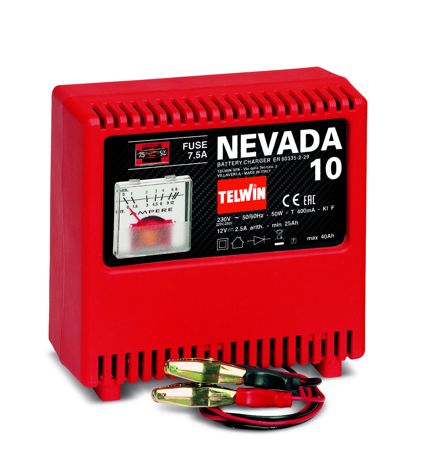 Зарядное устройство Telwin NEVADA 10 230V предназначено для зарядки аккумуляторов со свободным электролитом (WET) с напряжением 12В, с защитой от перегрузок и измененной полярности. Встроенный амперметр.